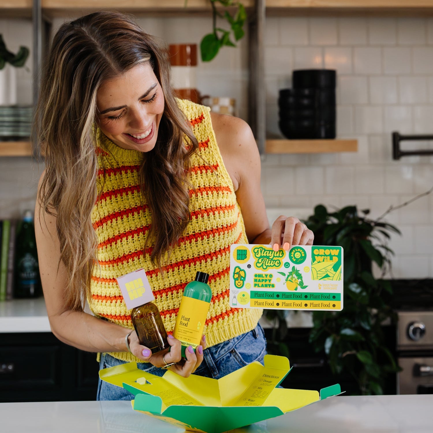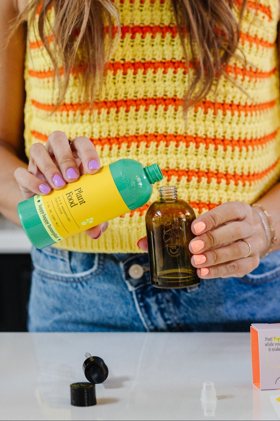 Plant Food is for every houseplant! It's an easy-to-use fertilizer that is gentle enough to use every time you water, and strong enough to turn your house into an actual jungle.